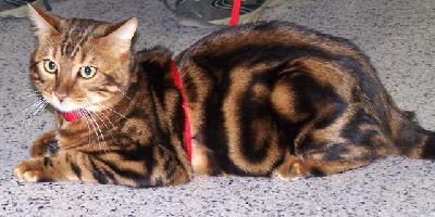 Bengálský kocourek je naopak velmi temperamentní, komunikativní a neustále ve střehu.